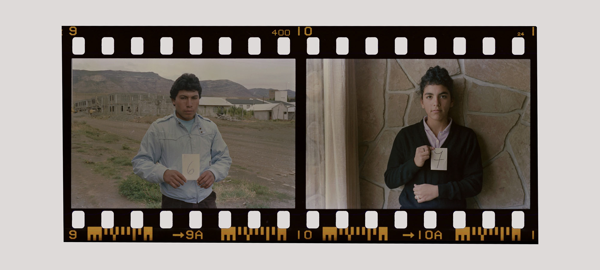 The rescue of work material reformulated as a work (a casting session that the artist carried out in lost towns in Argentine Patagonia at the end of the 80s for an Italian film). The material itself reveals an involuntary staging: the dedication of the candidates in their desire to be elected. A possibility of transcendence, of being looked at to mitigate the tedium of life in radical isolation. The numbers they carry as an identifying sign replace the particularity of the name. There is no singular identity: only the face remains. But these particular features (and especially the gaze) demonstrate ways of being and being-in-the-world, ways of connecting with the observer, ways of proposing oneself and be desired. The simplicity of an encounter based on the gaze at the camera (towards the audience), the coldness of the bluish and magenta tones of the archival material and the scale of quantity and extension - a kind of insistence - seek to challenge the security of the observer's identity. The work also observes the observer. As if it were a game of sights from inside cells, accentuated by the horizontality and sequentiality of the images/windows in their long exhibition display.