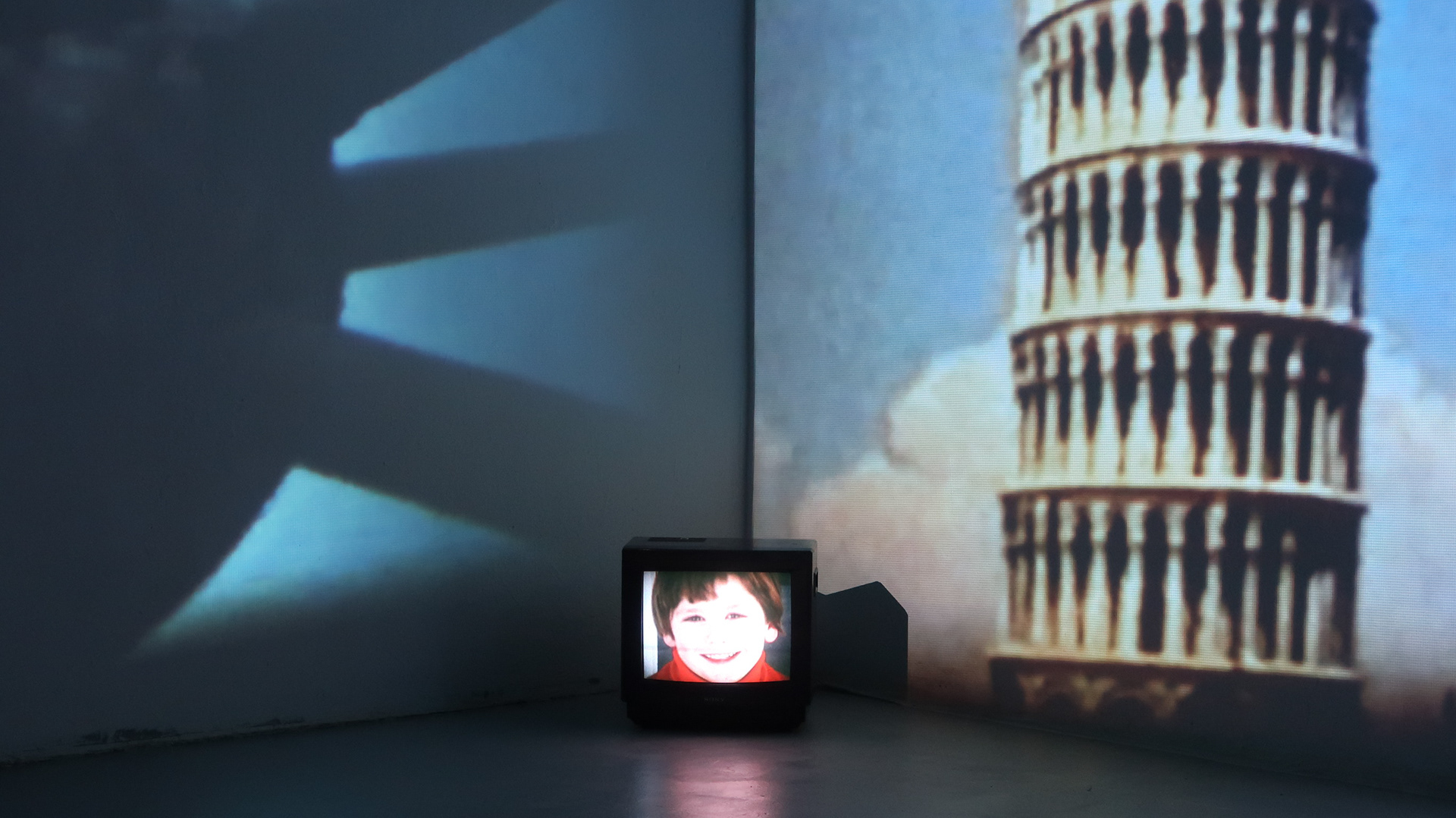 Sobre dos pantallas formando un ángulo de 90 grados, se ven distintos registros en Super 8 de monumentos y espacios de diferentes lugares del mundo, algunos emblemáticos. En un monitor a la altura del suelo, ocupando el centro de la instalación pero arrincondada, se suceden imágenes de un niño, primeros planos en cámara lenta. La diferencia en escala entre las pantallas y el monitor dan dimensión al discurso de la obra: los monumentos como alegoría de la figura del padre en contraste con la imagen pequeña e inocente del niño.